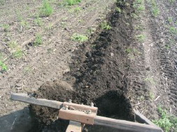 This product fills in the ditch leaving small ridge for the dirt to naturally settle. A tractor of at least 65 H.P. is needed to pull this machine. The width can easily be adjusted from inside the tractor to accommodate the width of your ditches.